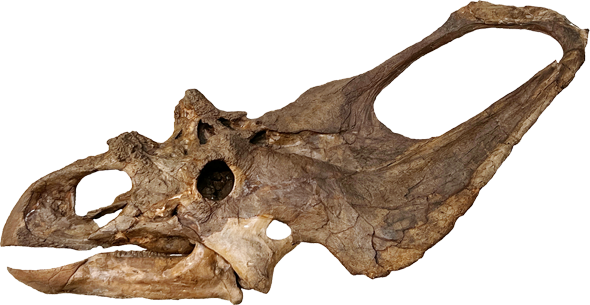 The holotype of Cryptarcus (CMNFV 8800, a mostly complete skull) was discovered in the Dinosaur Park Formation near the Onefour Research Station, 33 km southeast of the hamlet of Manyberries, Alberta, Canada, by Loris Russell in 1936.