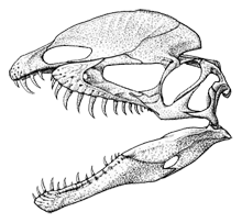 The holotype and paratype (UCMP 37302 and UCMP 37303) consist of a nearly complete juvenile skeleton and a partial juvenile skull and skeletal elements that are missing from the holotype.