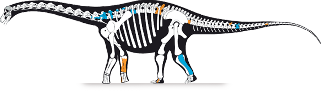 Referred material found close to the holotype includes two partial neck vertebrae (MPPC 02-012, MPMA 08-0049/02), two partial back vertebrae (MPMA 08-0050/01, MPPC 02-005), a tail vertebra (MPMA 08-0060/07), and a nearly complete calf and calf fragments (MPMA 09-0001/99, LPP-PV-0043).