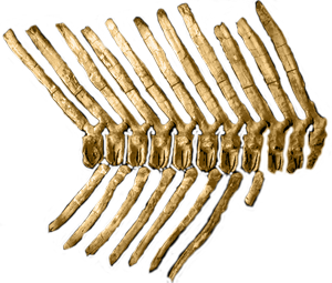Morris assumed, firstly, its insanely deep tail, due to chevrons (underneath) and spines (on top) which were four times longer than the centra (the central part of the vertebra) to which they were attached, was a means to propel itself through the water. Secondly, he overestimated its size and assumed a 16.5-metre-long 8.5-ton animal was just too big to support its own weight on dry land. Finally, he pointed to a broken-but-healed thighbone, insisting that a crippled terrestrial dinosaur would've been a sitting duck, unable to survive long enough for its injury to heal. Like Cretaceous-aged seaways were any less perilous!