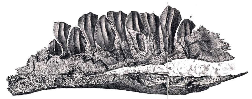 The holotype (NHM R2998) is an almost complete right dentary (the tooth-bearing bone of the lower jaw) with most of the teeth where they should be.