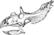 Typically, chasmosaurines had a long and relatively narrow, bony neck frill but Kosmoceratops went for the short and wide approach. Its frill is twice as wide as it is long, though it isn't very long, but in the mind of a ceratopsian it's not the size of your appendage but how much bling you can hang on your face that counts. Fifteen horny structures—ten hook-like horns on the top of its frill, a blunt blade-like nose horn, a small horny protuberance jutting out from each cheek and two sideways-angled brow horns—earned Kosmoceratops a name that means "ornate horn face" and made it the Mack Daddy of horned dinosaurs.