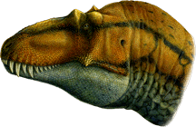 On face value, literally, 'cos that's almost all the remains we have, Lythronax is all tyrannosaurid, with its deep, rounded and robust snout, an expanded rear of the skull which allowed for fully forward-pointing eyes and thus binocular vision, and massive bone-crushing teeth. These features were nothing unusual in late-living tyrannosaurids that appeared some 70 million years ago, but what made palaeontologists shout "OMG" (or words to that effect) is that the "King of gore" was discovered in Utah's Mid-Campanian-aged Wahweap Formation so pushed the origin of tyrannosaurid-skull-robustness back some 10 million years into a time when the only tyrant lizards were thought to be the tyrannosauroids, and they were meek and mild by comparison.