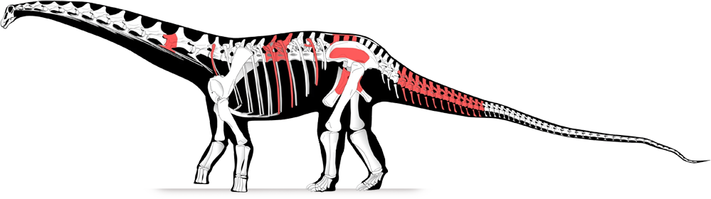 holotype (CRILAR-Pv 614) is a partial skeleton, including a neck vertebra, two back vertebrae, a partial block of hip vertebrae, a series of thirteen tail vertebrae, two hip bones (right pubis and left ischium), and several ribs.